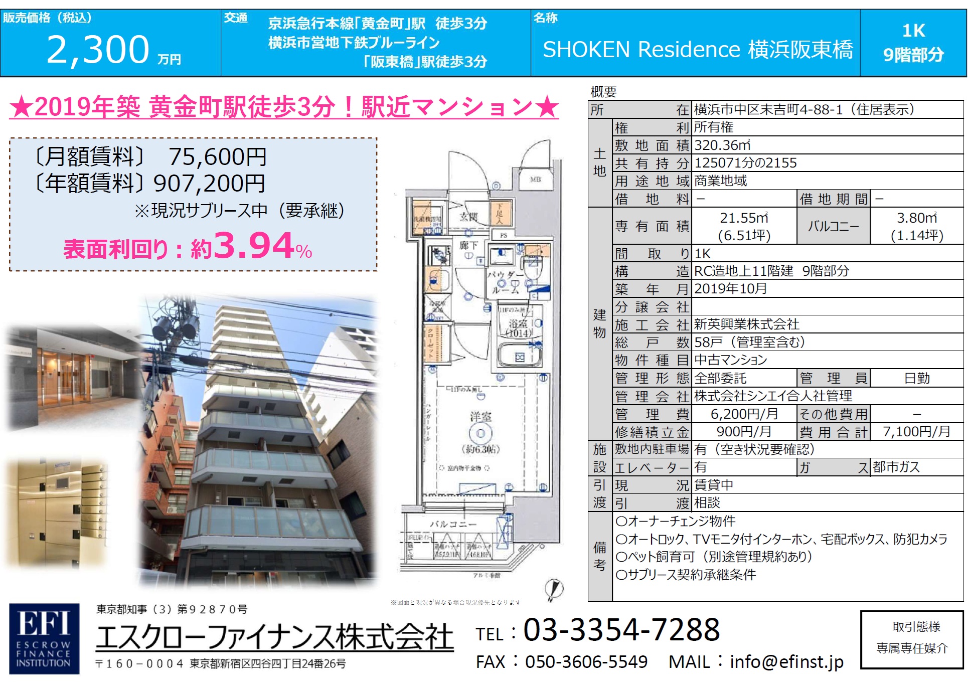 販売価格:2,300万円(表面利回り3.94%)