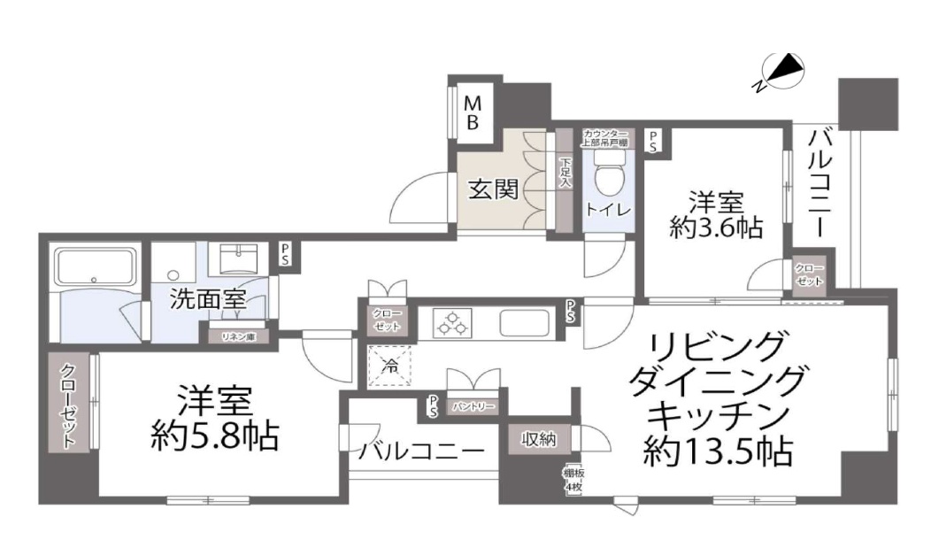 室内洗濯機置場 給湯 都市ガス 2面バルコニー エレベーター 宅配BOX |